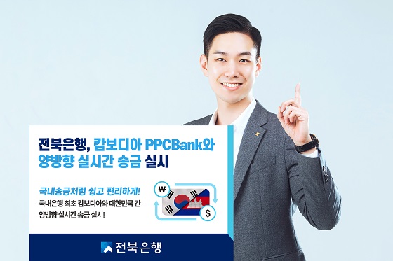 (전북=NSP통신) 김광석 기자 = JB금융그룹 전북은행(은행장 백종일)은 25일 캄보디아 PPCBank(Phnompenh Commercial Bank)와 전북은행간 ‘양방향 실시간 외화송금 서비스’를 시행한다고 밝혔다.