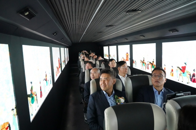 지난해 7월 서비스를 시작한 XR버스 1795행은 1795년 을묘원행 당시 정조대왕 능행차를 XR(확장현실)로 경험할 수 있는 ‘미디어 버스’다. T-OLED(Transparent-OLED, 투명 OLED, 평상 시에는 투명 상태를 유지하고 정보, 콘텐츠 등을 전달할 때 영상을 표출할 수 있는 디스플레이)와 관광을 결합한 최초 사례로 ‘터치수원’ 앱에서 예약 후 이용할 수 있다.