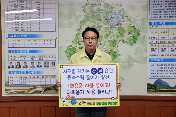 (전북=NSP통신) 김광석 기자 = 김민규 전북 진안군의회 의장이 18일 ‘바이바이 플라스틱(Bye Bye Plastic) 챌린지’에 동참했다.