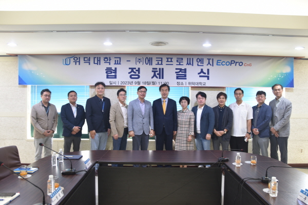 (경북=NSP통신) 최병수 기자 = 위덕대학교(총장 김봉갑)와 에코프로씨엔지(대표 박석회)가 18일 위덕대학교 대회의실에서 상호협력을 위한 업무 협약식을 거행했다.