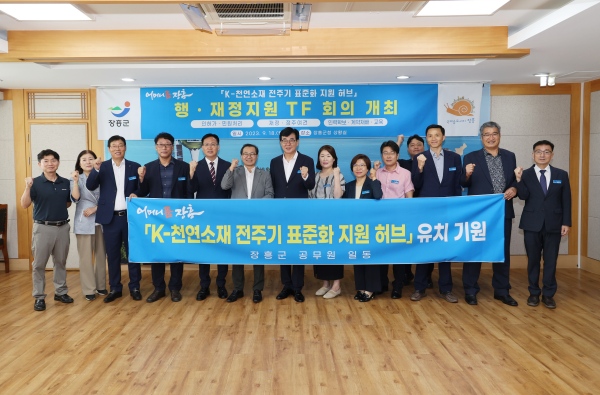 (전남=NSP통신) 김용재 기자 = 장흥군이 지난 18일 군청 상황실에서 ‘K-천연소재 전주기 표준화 지원 허브’ 구축 공모에 따른 행·재정 지원 TF 구성· 운영 회의를 개최했다.