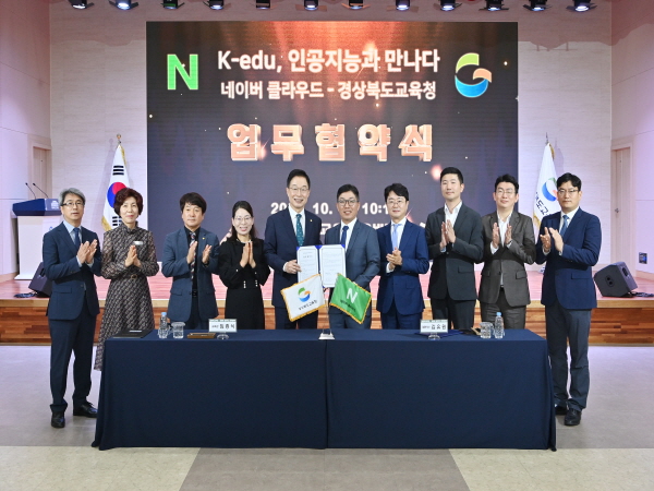 이번 협약으로 양 기관은 △네이버 인공지능 하이퍼클로바 X를 활용한 경북교육청의 학교지원종합자료실 생성형 서비스 도입 △네이버 클라우드 기술을 활용한 경북교육 디지털 전환과 새로운 가치 창출 등 다양한 교육 분야에 상호 협력하기로 했다.