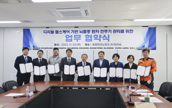 NSP통신-에스포항병원은 지난 2일 포항테크노파크 AV회의실에서 열린 디지털 헬스케어 기반 뇌졸중 환자 전주기 관리를 위한 업무 협약을 체결했다고 밝혔다. (사진 = 에스포항병원)