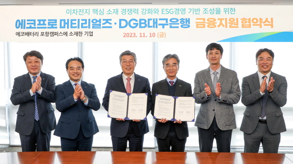 DGB대구은행-에코프로 5개 계열사, 이차전지 핵심소재 경쟁력 강화 위한 금융지원 협약 체결