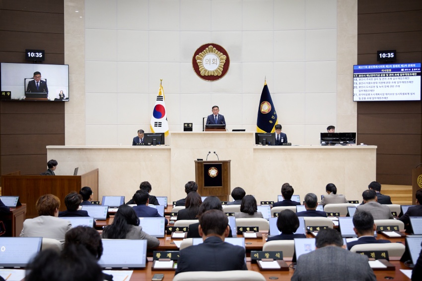(경기=NSP통신) 김병관 기자 = 경기 용인특례시의회(의장 윤원균)는 20일 본회의장에서 제277회 제2차 정례회 제2차 본회의를 열었다.