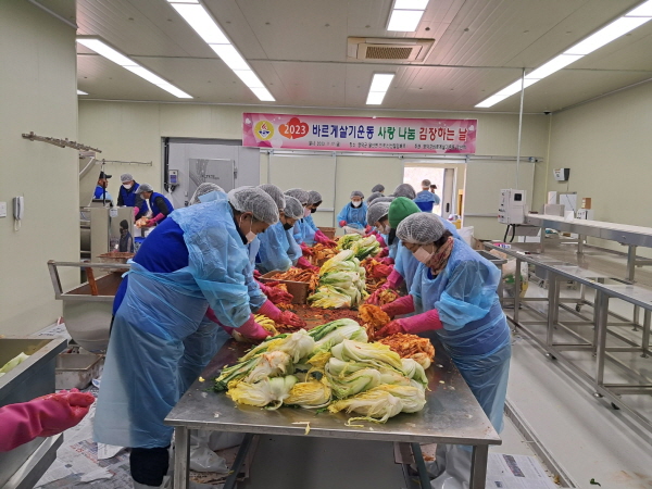 (경북=NSP통신) 조인호 기자 = 바르게살기운동 영덕군협의회는 지난 17일 달산면 신선절임배추공장에서 어려운 이웃들을 위한 김장 봉사활동을 펼쳤다.