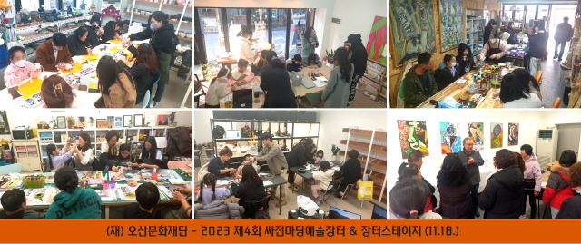 (경기=NSP통신) 조현철 기자 = 경기 오산문화재단(대표 이수영)이 지난 18일 오색시장 인근 오산창작예술촌과 오산장터 커뮤니티센터 광장 일원에서 ‘2023 제4회 싸전마당예술장터 & 장터스테이지’ 예술체험 행사를 개최했다.