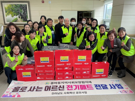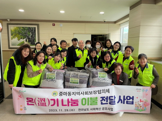 이번 동절기 물품 전달은 복지 사각지대 발굴 및 지원을 위해 응모한 전남 사회혁신 공모사업에 선정돼 추진됐으며, 협의체는 저소득 취약계층을 위해 425만 원 상당의 동절기 물품(전기매트와 이불)을 구입했다.