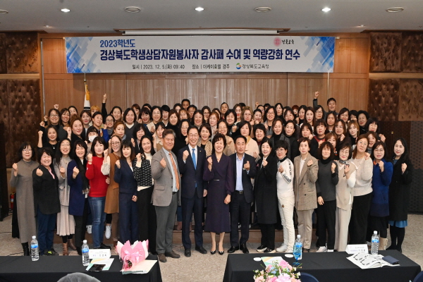 (경북=NSP통신) 조인호 기자 = 경상북도교육청(교육감 임종식)은 5일 더케이호텔 경주에서 경북 학생 상담자원봉사자 연합회 회원 100여 명이 참석한 가운데 ‘2023년 경상북도 학생상담 자원봉사자 표창패 수여와 역량 강화 연수’ 를 개최했다.