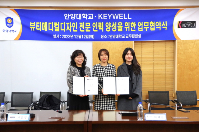 안양대학교 교무회의실에서 12일 오후 4시에 열린 업무협약식 에서는 이여진 뷰티메디컬디자인학과 학과장, 위서현 교수, 최은영 키웰 차장이 참석한 가운데 두 기관의 적극적인 상호협력 방안이 논의됐다.
