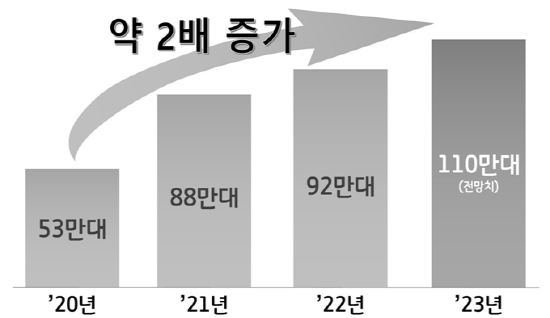 이와 같은 노력으로 2020년 52만 대 처리에서 2021년 88만 대, 2022년 92만 대, 2023년 110만 대(전망)로 2020년 대비 2배 이상 증가한 자동차 화물 처리 실적을 기록할 것으로 전망된다.