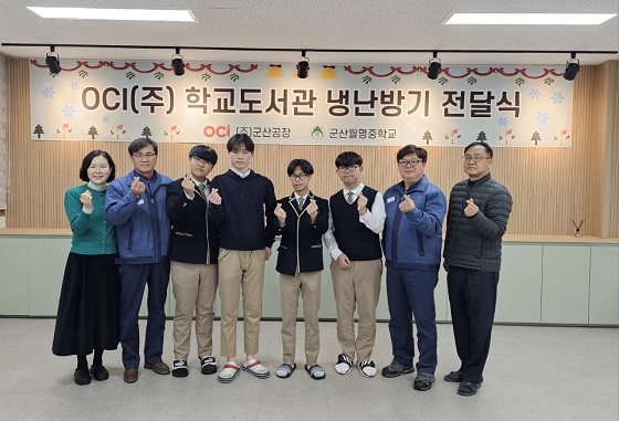 (전북=NSP통신) 김광석 기자 = OCI(456040) 군산공장은 소룡동 인근 군산월명중학교를 방문해 도서관에 냉·난방기 2대를 전달했다고 23일 밝혔다.