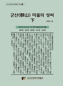 군산의 11개 읍면 중 ‘옥구읍·옥서면·회현면·옥산면·옥도면·개정면’ 등 6개 읍면의 마을별 성씨 분포 현황을 정리한 上(상)권에 이어 이번 발간된 下(하)권에서는 ‘대야면·성산면·임피면·서수면·나포면’ 등 5개 면의 마을별 성씨 분포 현황을 소개하며, 전반적인 구성은 읍‧면 소개, 마을 소개, 성씨 현황, 주요 성씨 소개 등 4개의 주제로 이뤄져 있다.