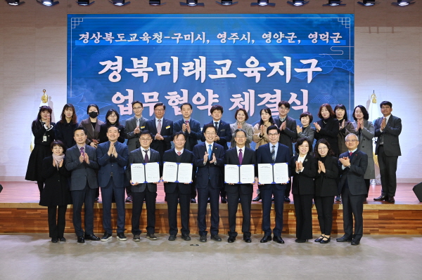 (경북=NSP통신) 조인호 기자 = 경상북도교육청(교육감 임종식)은 19일 도 교육청 웅비관에서 경북교육청과 △구미시 △영주시 △영양군 △영덕군 간 경북미래교육지구 사업추진을 위한 업무 협약을 체결했다.