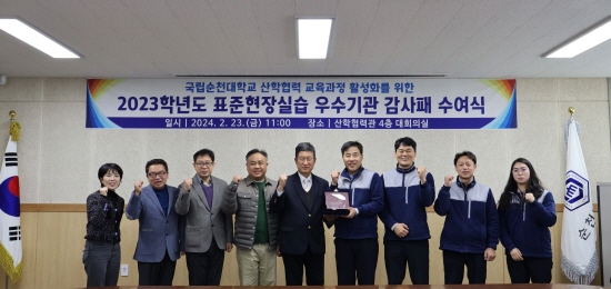 (전남=NSP통신) 김성철 기자 = 국립순천대학교(총장 이병운)는 2023학년도 표준 현장실습 교육과정에 적극 참여해 준 우수기업으로 포스코이앤씨를 선정하고, 감사패를 전달했다고 밝혔다.