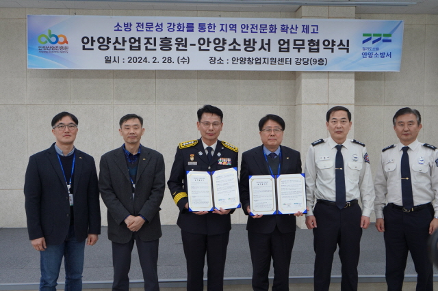 (경기=NSP통신) 서국현 기자 = 경기 안양산업진흥원(이사장 최대호)은 28일 안양창업지원센터 9층 강당에서 안양소방서와 지역 안전문화 확산을 위한 업무협약을 체결했다.