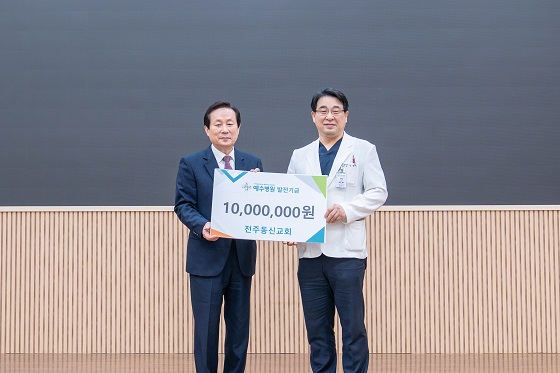(전북=NSP통신) 김광석 기자 = 전주 예수병원(신충식 병원장)은 동신교회(신정호 담임목사)에서 병원 발전기금 1000만원을 전달했다고 6일 밝혔다.