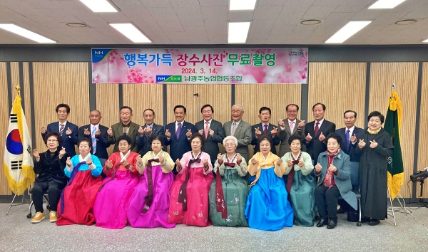 이영종 조합장은 “장수사진을 미처 준비하시지 못한 원로조합원들에게 행복하고 건강한 모습을 담아드리기 위해 이번 행사를 마련했다”며 “조합원들의 복지향상과 실익증진을 위해 최선을 다하는 남광주농협을 만들어가도록 노력하겠다”고 말했다.