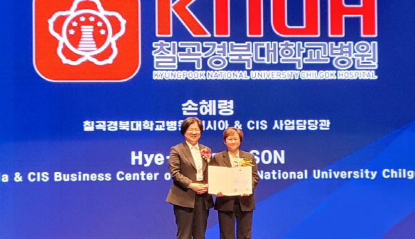 (경북=NSP통신) 김대원 기자 = 칠곡경북대학교병원 국제의료사업센터 손혜령 담당(러시아&CIS권역 사업)이 지난 14일 서울 코엑스에서 열린 ‘2024 메디컬코리아 글로벌 헬스케어 유공포상’ 시상식에서 보건복지부 장관 표창을 수상했다.
