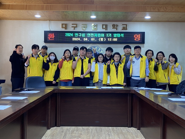 (경북=NSP통신) 김대원 기자 = 대구공업대학교(총장 이별나) 연구실 안전센터에서는 지난 1일 1호관 2층 세미나실에서 ‘연구실 안전지킴이 3기 발대식’ 을 개최했다.