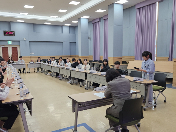 이경옥 교육장은 학생들의 질문과 건의 사항을 꼼꼼히 메모하고 경청하며 학생들에게 질문된 내용에 대한 상세한 안내와 격려를 아끼지 않았다.