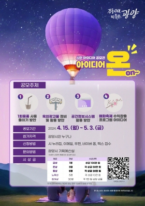 공모 기간은 4월 15일~5월 3일까지 3주간이며, 광양시민이라면 누구나 참여할 수 있다.