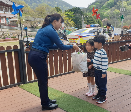 호신용 호루라기는 아이들이 위험한 상황에 처했을 때 각종 범죄로부터 보호받을 수 있도록 경찰 응원 영상을 찍어준 산새소리숲 유치원 어린이들에게 전달됐다.