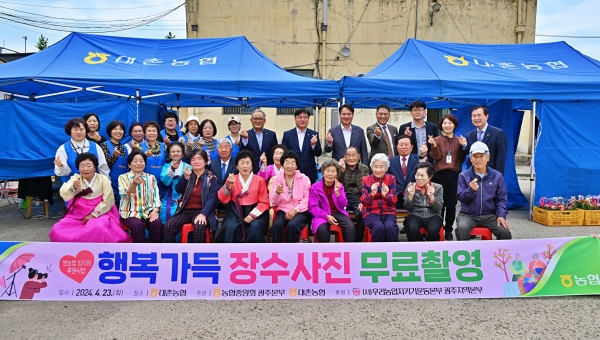 (전남=NSP통신) 김용재 기자 = 농협광주본부(본부장 이현호)는 23일 남구 지석동 대촌농협(조합장 이환형)에서 관내 농촌 어르신들을 대상으로 ‘행복가득 장수사진’ 촬영을 실시했다.