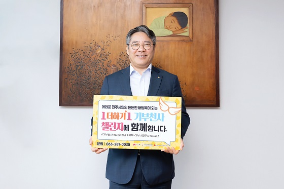 (전북=NSP통신) 김광석 기자 = 전북은행 백종일 은행장이 어려운 전주시민의 든든한 버팀목이 되는 ‘전주시 복지재단 1더하기1 기부천사 챌린지’에 동참하며 지역사회에 선한 영향력 확산에 나섰다.