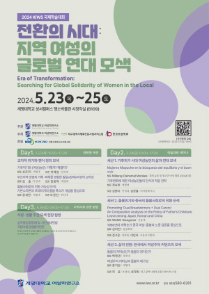 (경북=NSP통신) 김대원 기자 = 계명대학교 여성학연구소 인문사회연구소와 한국여성학회, 대구광역시행복진흥사회서비스원이 공동으로 ‘전환의 시대: 지역여성의 글로벌 연대 모색’ 을 주제로 오는 24일부터 25일까지 ‘2024 KIWS 국제학술대회’ 를 개최한다.