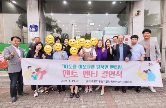 (전남=NSP통신) 김성철 기자 = 민주평화통일자문회의 광양시협의회(회장 남기호)는 지난 21일 북한이탈주민이 우리 사회 구성원으로서 원활히 적응하고 생활할 수 있도록 두 번째 행사로 ‘따뜻한 이웃사촌 탈북민 멘토링’ 멘토-멘티 결연식을 개최했다고 밝혔다.