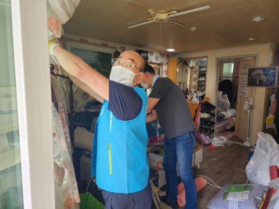주거환경개선 봉사에는 20여 명의 민관 자원봉사자가 협력해 홀로 지내며 불편한 몸 때문에 집 정리와 청소를 하지 못해 어려움을 겪고 있는 대상 가구를 방문해 집안 쓰레기와 불필요한 물건들을 정리하고 청소를 실시했다.