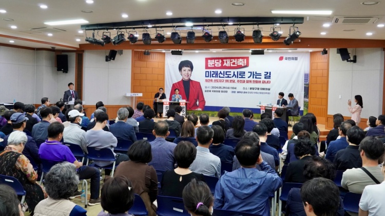 (경기=NSP통신) 김병관 기자 = 김은혜 국민의힘 성남시 분당을 국회의원 당선인은 29일 분당구청에서 분당 내 각 단지별 재건축 추진위원장과 분당주민 등 500여 명이 참석한 가운데 분당 재건축 토론회를 성황리에 개최했다.