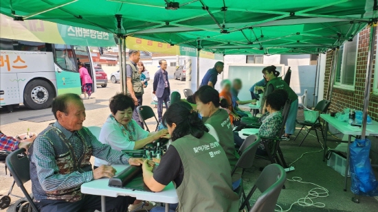 행사에서는 광양시 자원봉사자들과 협업해 이·미용, 네일아트, 마사지, 키오스크 체험, 칼갈이 등 다양한 서비스를 제공하고, 행복버스를 이용해 혈압·혈당, 인바디, 스트레스 검사 등 의료 서비스를 50여 명의 주민에게 제공했다.