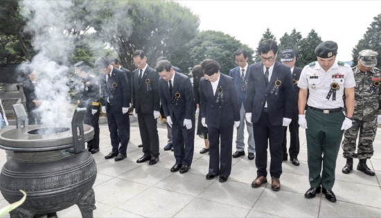 (전남=NSP통신) 김성철 기자 = 광양시는 지난 6일 현충탑 광장에서 ‘제69회 현충일’을 맞이해 순국선열과 호국영령의 명복을 빌고 국가를 위해 희생하신 분들의 숭고한 희생정신과 나라사랑 정신을 기리기 위한 추념식을 개최했다.