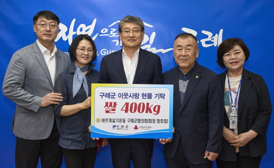 (전남=NSP통신) 김성철 기자 = 구례군은 지난 7일 바르게살기운동 구례군협의회(회장 함호림)에서 사랑의 쌀 400kg을 군에 기탁했다고 밝혔다.