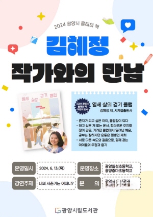 (전남=NSP통신) 김성철 기자 = 광양시립도서관은 6월 13일 광양칠성초등학교, 중마초등학교에서 5~6학년 초등학생 114명을 대상으로 올해의 책 어린이 도서 ‘열세 살의 걷기 클럽’의 저자 김혜정 작가와의 만남을 개최한다고 밝혔다.
