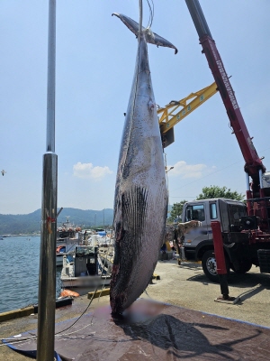 (경북=NSP통신) 조인호 기자 = 경주시 대본리 해상에서 7m짜리 밍크고래가 혼획됐다.
