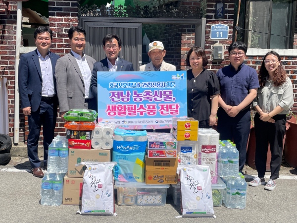 이 날 전달식 후 박종탁 본부장은 목포시 용해동 6·25 참전용사 김노성 어르신 자택을 방문해 참전용사에 대한 감사의 마음을 담은 전남대표 농축산물과 생필품을 전달하는 특별한 시간을 가졌다.