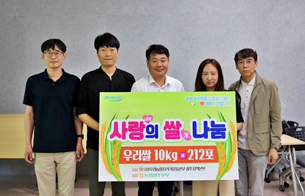 (광주=NSP통신) 김용재 기자 = 농협광주본부(본부장 이현호)와 우리농업지키기운동본부 광주지역본부(본부장 한제규)는 참(원장 조광영)을 방문해 ‘사랑의 쌀 나눔 행사’를 실시했다.