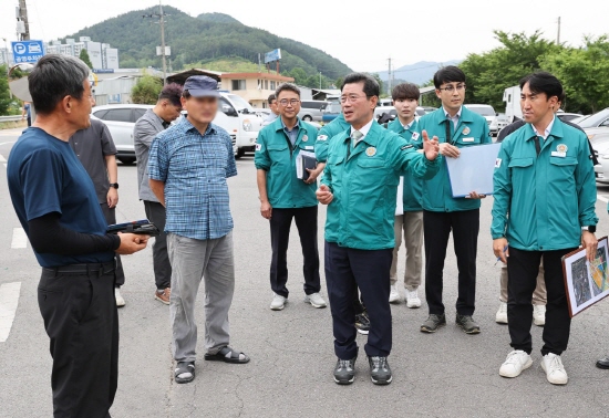 정인화 광양시장 신안공업사 삼거리 도로 확장 건의 현장 점검 (사진 = 광양시청)