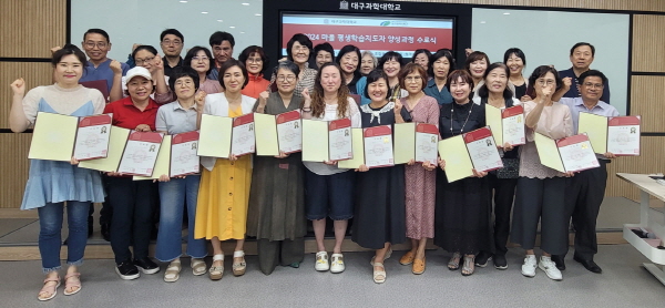 (경북=NSP통신) 김대원 기자 = 대구과학대학교(총장 박지은)는 지난 17일 종합복지관 강의실에서 ‘2024년 마을 평생학습 지도자 양성과정’ 수료식을 개최했다.