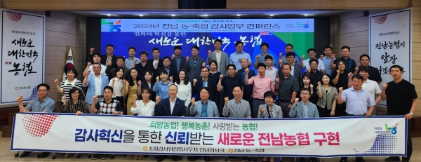 (전남=NSP통신) 김용재 기자 = 농협중앙회 조합감사위원회 전남검사국(국장 이두식)은 전남농협본부 대강당에서 관내 농축협 감사업무 책임자 등 80여 명이 참석한 가운데 ‘감사업무 변화와 혁신을 통한 새로운 전남농협 구현’을 향한 컨퍼런스를 개최했다.