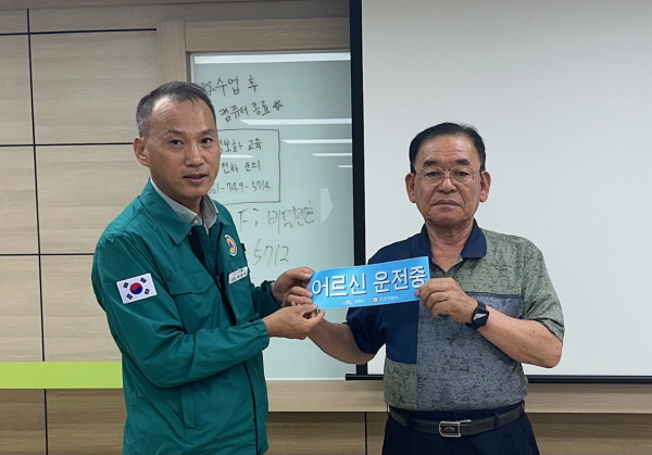 이번 캠페인 스티커는 지난해 개정된 도로교통법 규정에 따라 파란색 바탕, 흰색 글씨로 ‘어르신 운전중’이라는 문구가 적혀 있으며, 야간에도 다른 차량들이 쉽게 인식할 수 있도록 반사지로 제작됐다.