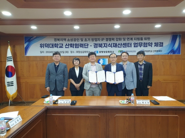 이날 협약식에는 위덕대학교 이성환 산학협력단장, 경북지식재산센터 배상철 센터장 및 관계자 등이 참석했고, 지식재산 기반의 소상공인 및 초기 창업자의 성장 지원을 위한 연계 방안 등도 함께 논의했다.