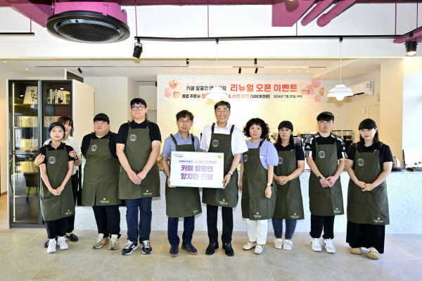 (경북=NSP통신) 조인호 기자 = 지난 1일 한울원자력본부 이세용 본부장은 리모델링 후 재개장한 카페 알움인에 한울본부의 슬로건과 알움인·울진지역자활센터(센터장 황천호)의 로고가 새겨진 앞치마를 전달하고, 핸드드립 커피를 직원들에게 대접하는 시간을 가졌다.