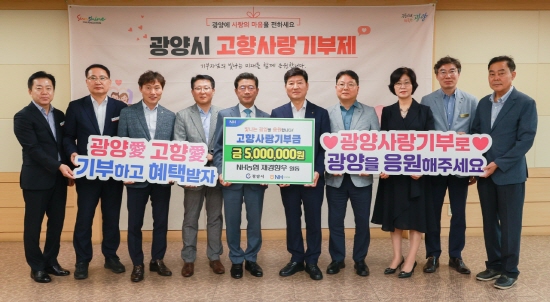 (전남=NSP통신) 김성철 기자 = 광양시는 NH농협 재경향우 10명이 광양의 빛나는 발전을 응원하기 위해 고향사랑 기부에 동참해 기부금 500만 원을 전달했다고 밝혔다.