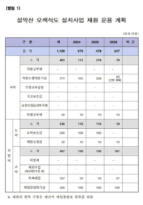 또한 도비보조금은 2024년 100억원을 포함해 200억원이 확보됐고 특별교부세 30억원, 지방재정교부금 30억원 등을 연차별로 확보할 예정이다.
