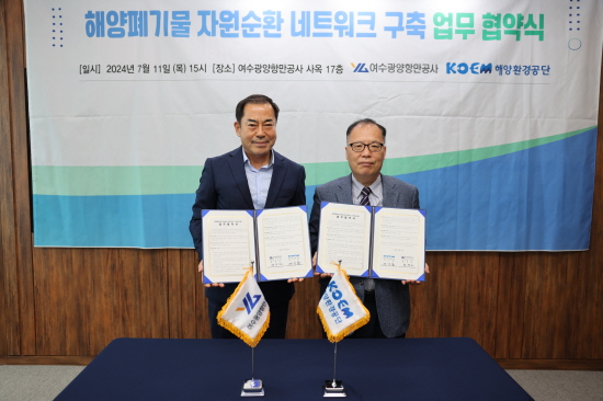 (전남=NSP통신) 김성철 기자 = 여수광양항만공사(이하 공사, 사장 박성현)는 지난 11일 해양환경공단과 ‘해양폐기물 자원순환 네트워크 구축 업무협약’을 체결했다고 밝혔다.