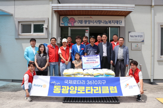 이병남 진상면장은 “지역사회 이웃 사랑을 실천을 위해 나눔을 전하고 있는 동광양로터리클럽에 감사드린다”며 “도움이 필요한 어려운 가정에 소중히 전달하겠다”고 말했다.